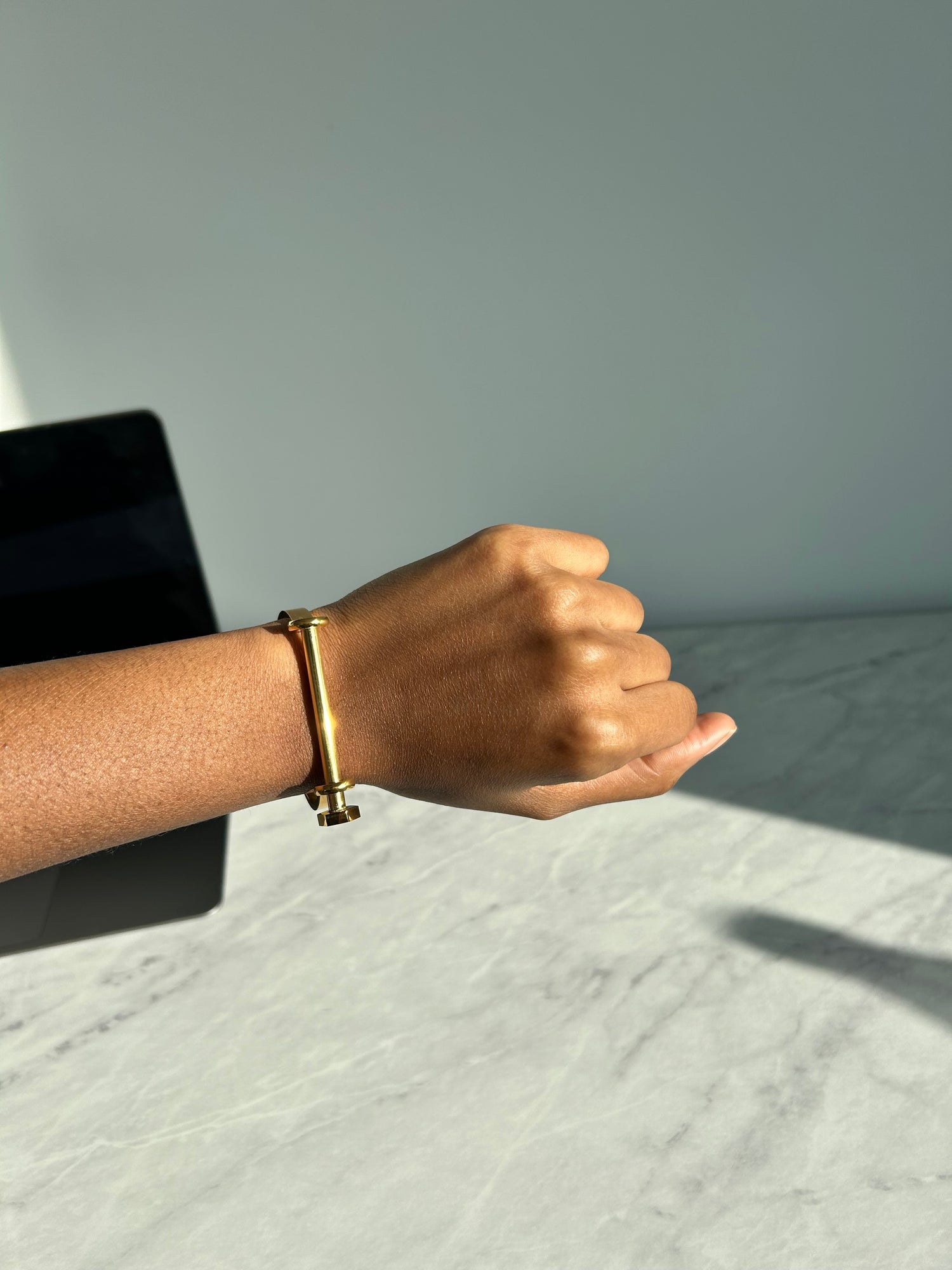 Strength meets sophistication. The Titan Bangle features a bold, structured silhouette, embodying power. Perfect for those who love a statement piece.