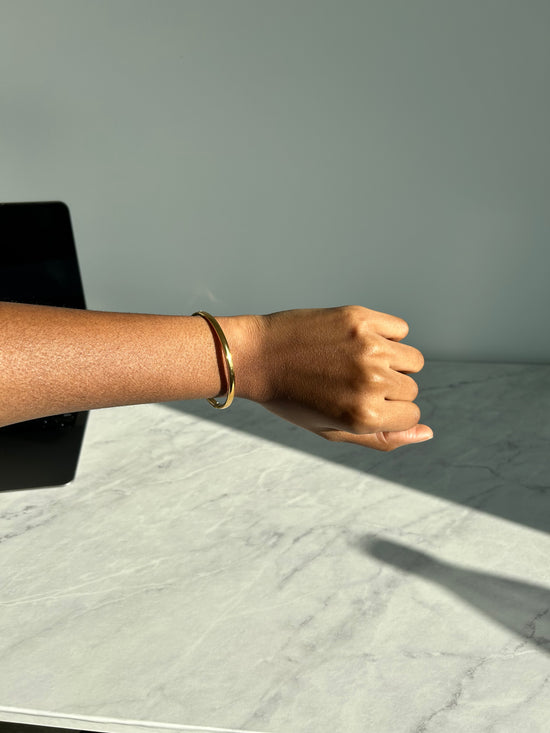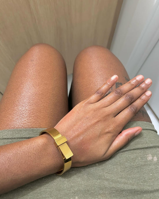 Strength meets sophistication. The Titan Bangle features a bold, structured silhouette, embodying power. Perfect for those who love a statement piece.